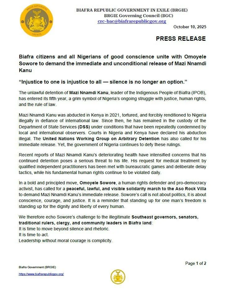 Omoyele Sowore Demands Mazi Nnamdi Kanu Release